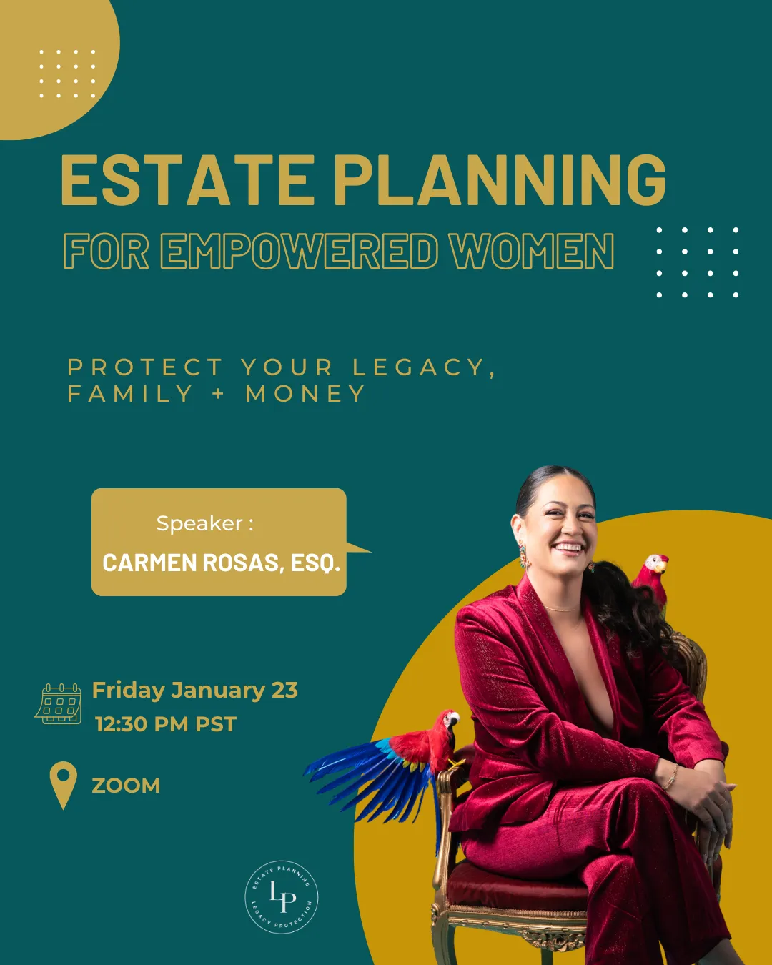 The workshop is led by Carmen Rosas, Esq., founder of Legacy Protection Firm, P.C., with over 13 years of experience helping families plan with confidence.